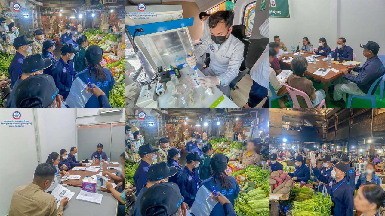 បានចំនួន៣០គំរូ រួមមាន៖ បន្លែ ផ្លែឈើ គ្រឿងសមុទ្រ ត្រីងៀត សាច់ក្រក ប្រហុក-ផ្អក ស្លឹកគ្រៃហាន់ ខ្ញីហាន់ សរសៃគុយទាវ មី តៅហ៊ូ ពោះគោ ជាដើម ដើម្បីយកមកវិភាគនៅក្នុងរថយន្តពិសោធន៍ចល័ត។ ក្រោយពីធ្វើការត្រួតពិនិត្យ វិភាគលើសំណាកគំរូទាំងអស់រួចមក លទ្ធផលបង្ហាញថា ពុំបានរកឃើញវត្តមានសារធាតុគីមីហាមឃាត់ណាមួយមានវត្តមាននៅក្នុងគំរូទាំងអស់នោះទេ។ ជាមួយគ្នានោះ មន្រ្តីជំនាញក៏បានធ្វើការត្រួតពិនិត្យអនុលោមភាពលើផលិតផលវេចខ្ចប់ស្រាប់ ដើម្បីការពារសុខុមាលភាពអ្នកប្រើប្រាស់ជៀសវាងភាពមិនប្រក្រតីកើតឡើងជាយថាហេតុ។